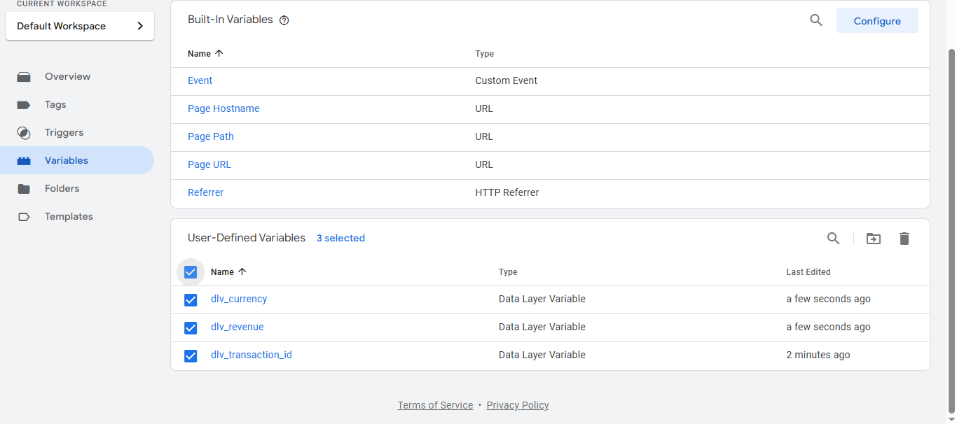 Create the following Data Layer Variables in Google Tag Manager to pass dynamic values into your third-party tags: